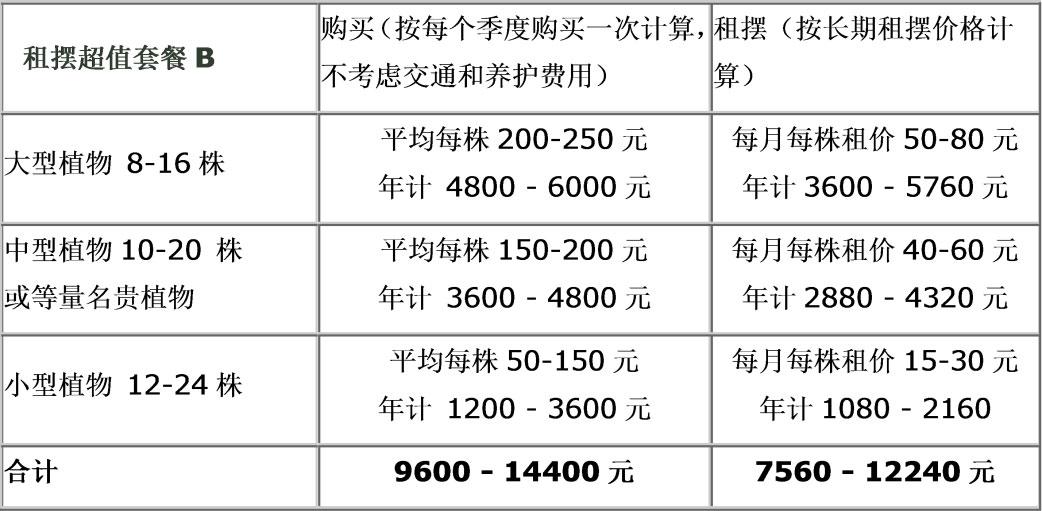 绿化租摆超值套餐C:1000-5000元/月 60-200株